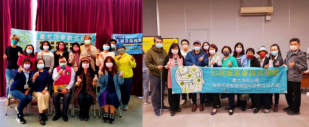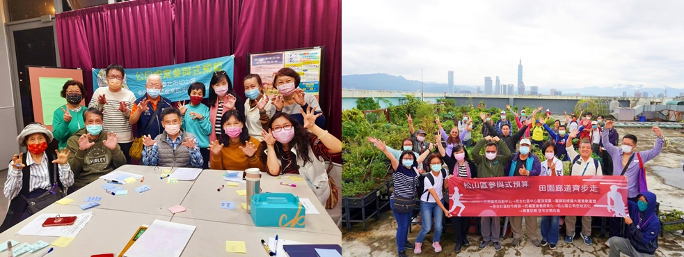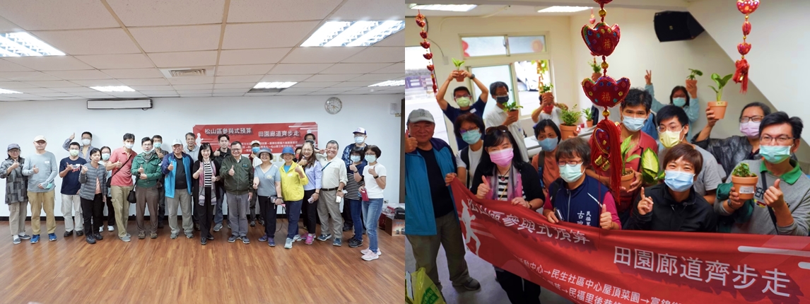 自臺北市105年推動參與式預算開始,松山社大即以義務方式投入松山區唯一的陪伴輔導學校迄今。為的就是廣為培植參與式民主的種子、落實社區大學公民社會的職志。109年投入各場次培力與住民大會,松山區110年度參與式預算提案案件共有四件,分別為:幸福走出門_長者照護陪伴和福利、輕盈青銀,間代拉好,從齡到一案號、「讓」出新人生、松山機場,國門地標改善,四案皆經過i-Voting網路投票,通過錄案,同時110.09.23與區公所合力進行參與式預算初階培訓課程、110.11.10進行參與式預算進階培訓課程,本校校長與黃雲廷皆參與培訓,另110.11.4與區公所合作舉辦參與式預算田園廊道齊步走,帶領社區民眾認識民福里、民生活動中心等閒置空間綠化活化之參與式預算成果。